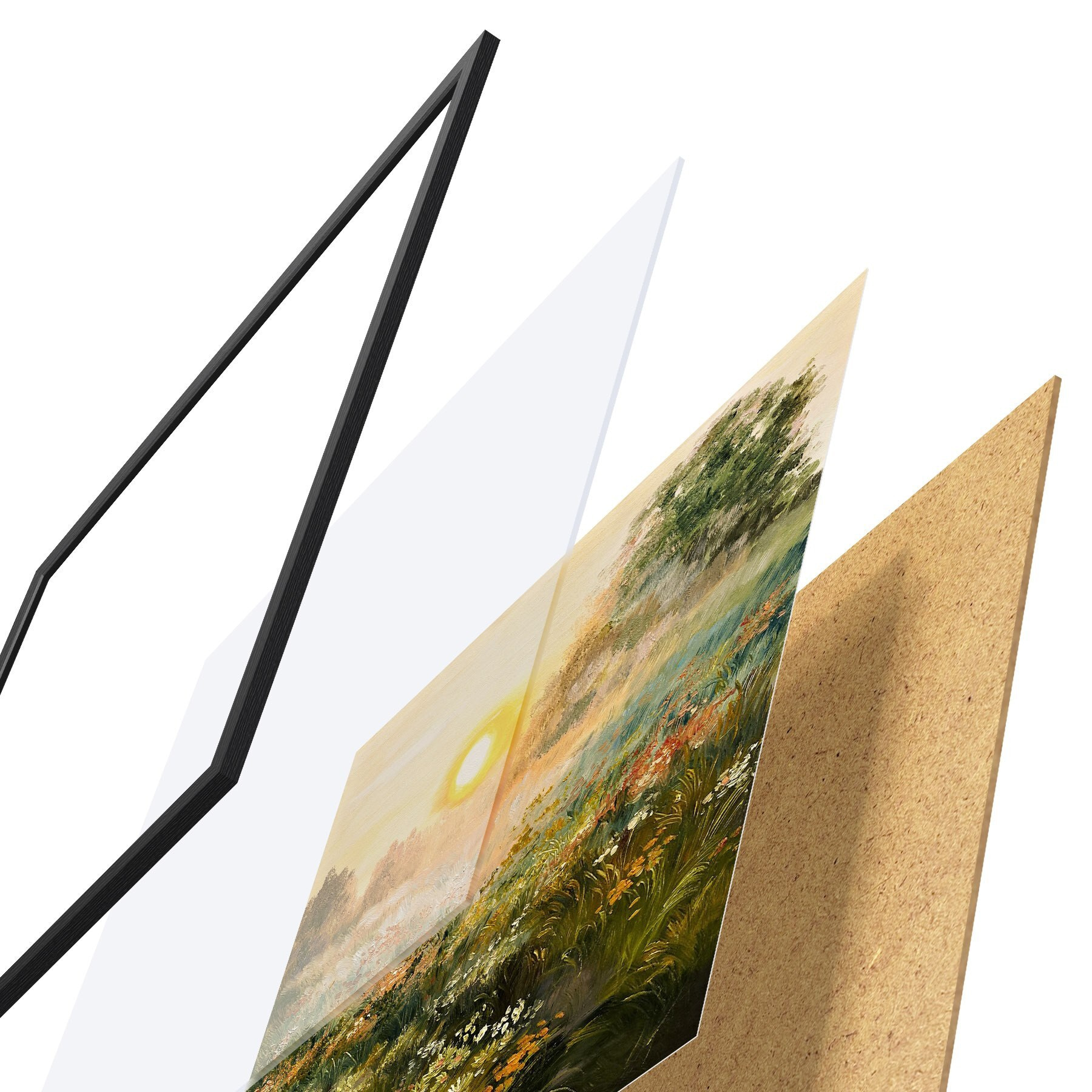 Poster Olieverfschilderij - zonsopgang in het veld f34612