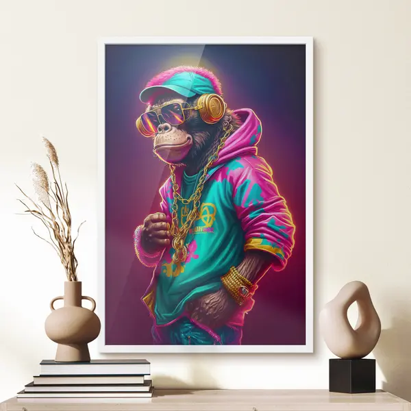 Poster Stijlvolle primaat in levendige kleding Nr f34891
