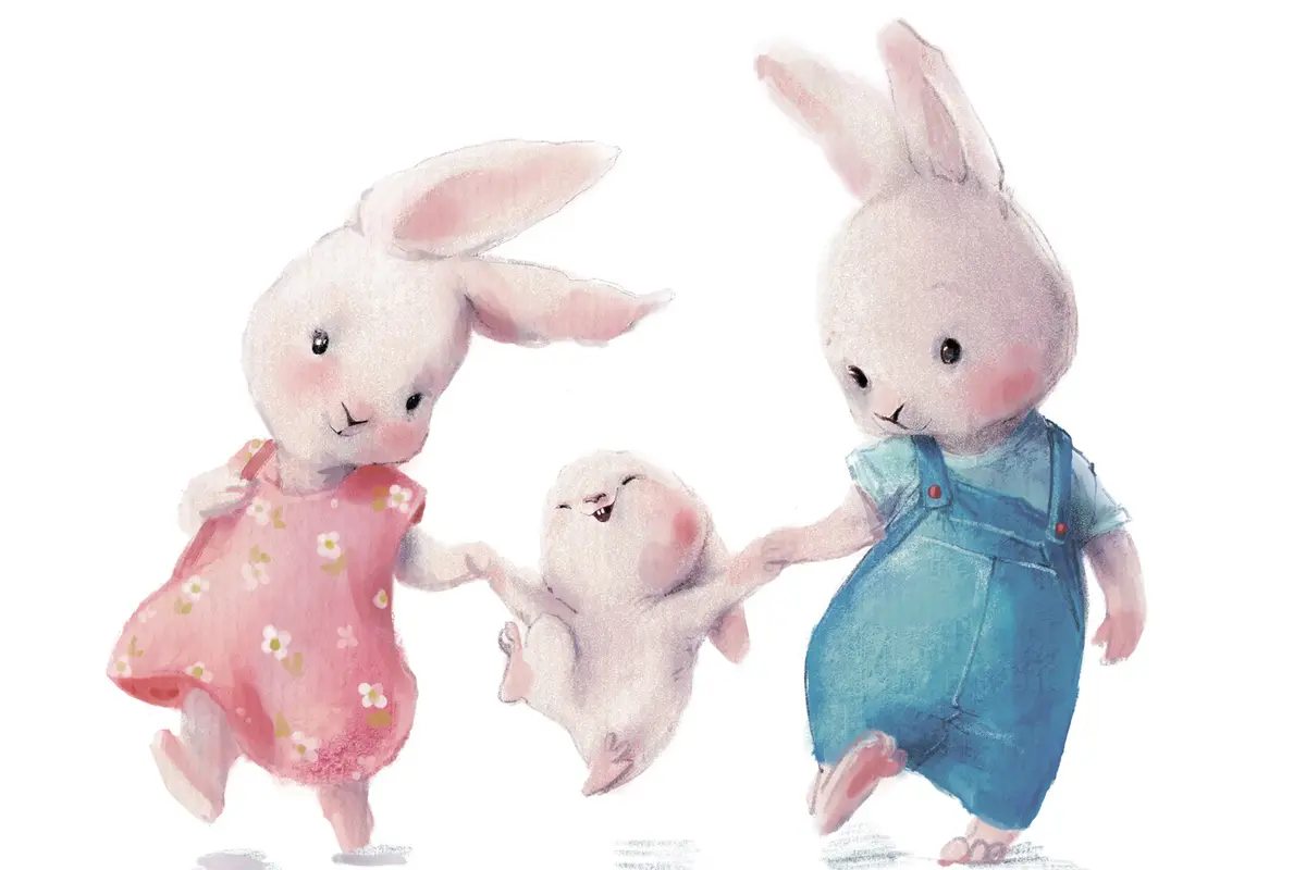 Poster Konijntjes genieten van een vrolijk moment f34997