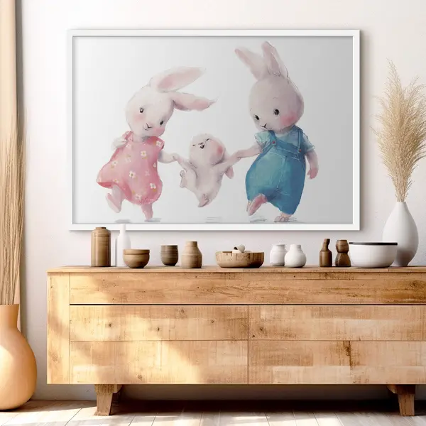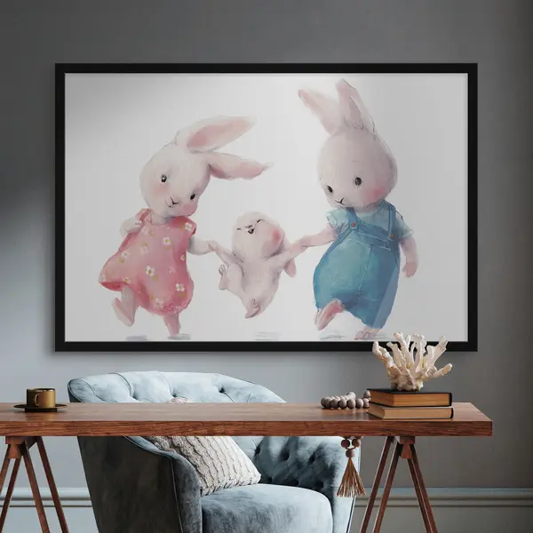 Poster Konijntjes genieten van een vrolijk moment Nr f34997