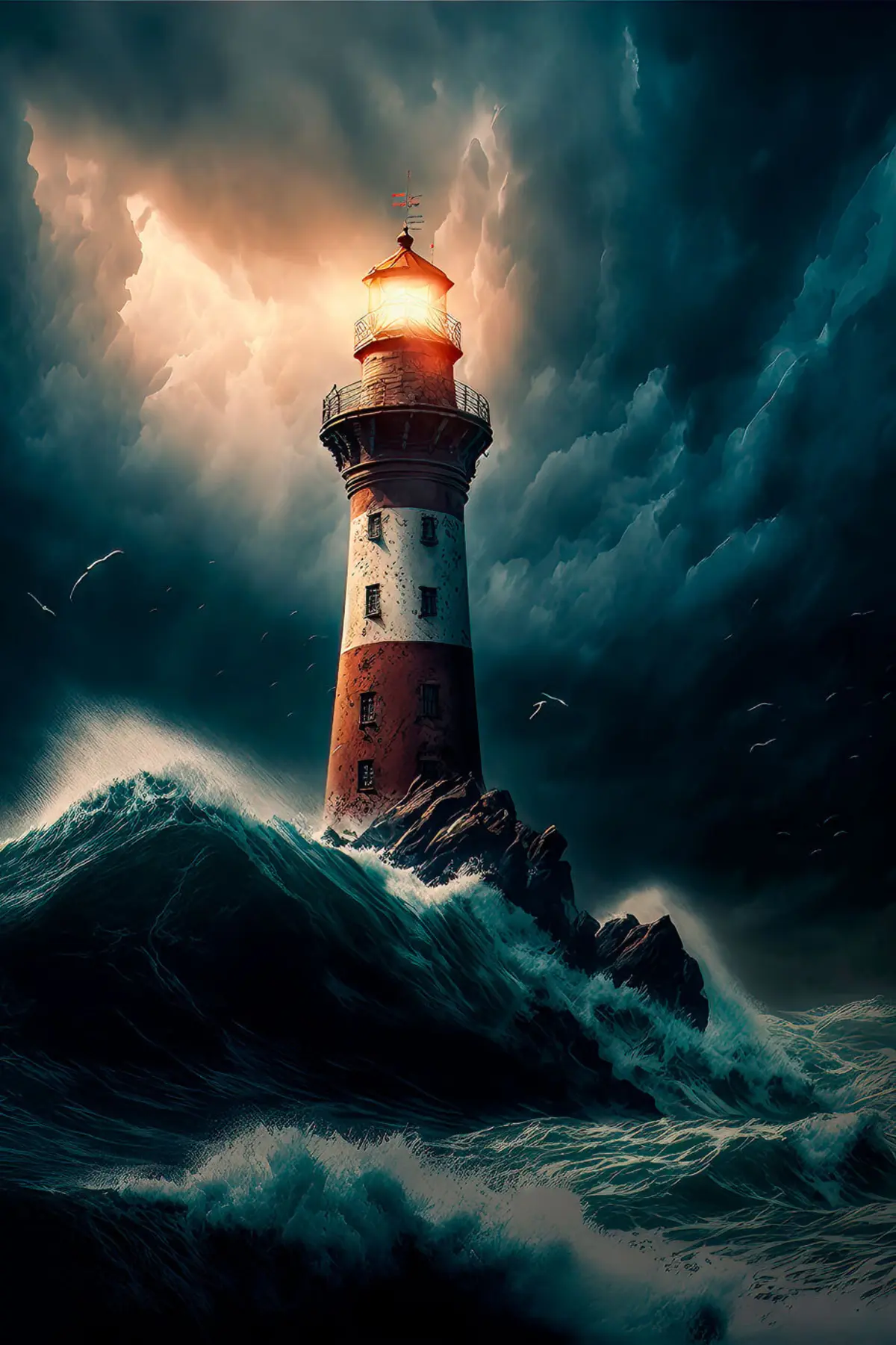Poster Baken dat door woelige wateren loodst Nr f35349