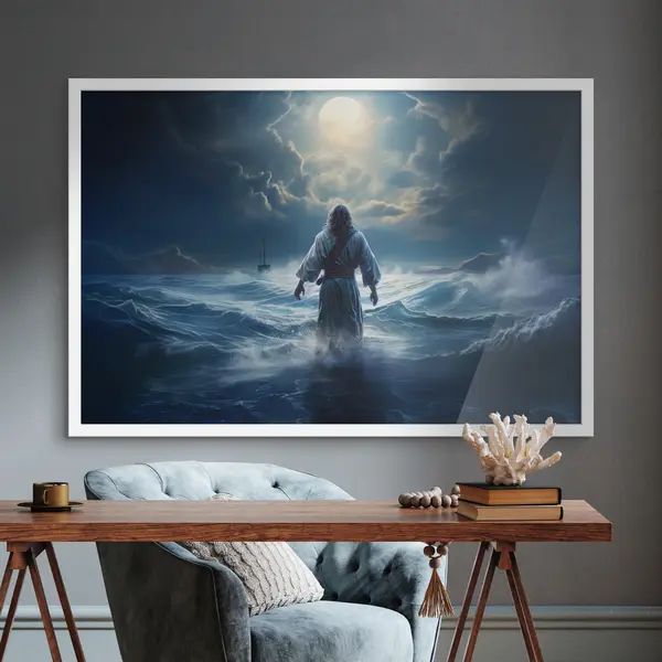 Poster 's Nachts over woelige wateren lopen f35357