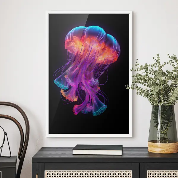 Poster Helder gloeiende kwallen in beweging Nr f35363