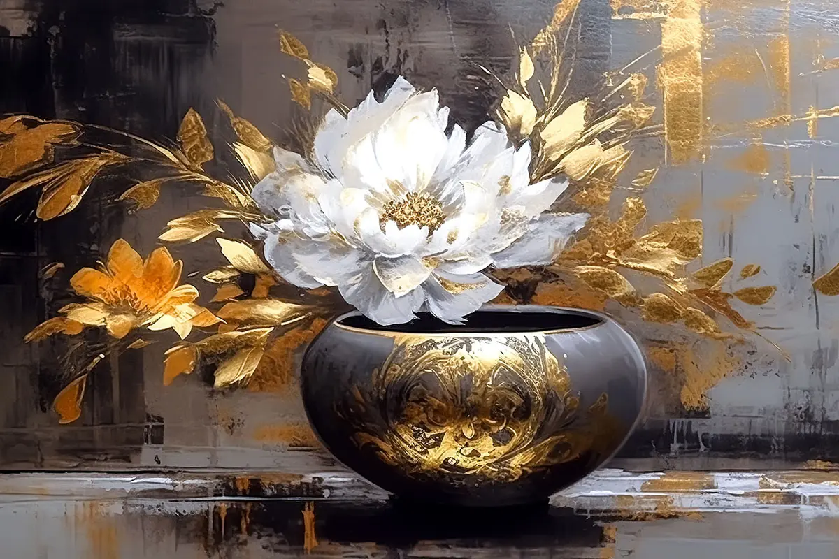 Poster Elegante vaas met bloeiende bloemen Nr f35388
