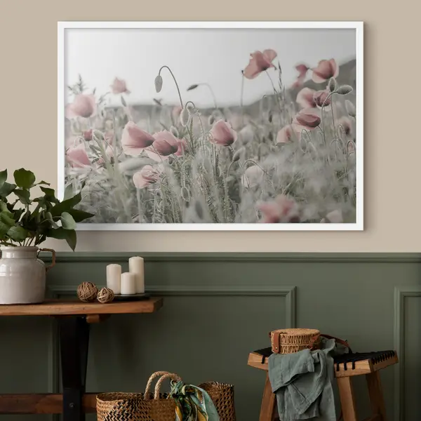 Je kunt het schilderij ophangen aan schroeven. Hiervoor leveren we bevestigingen bij onze foto's, zodat je de foto gemakkelijk kunt ophangen.
