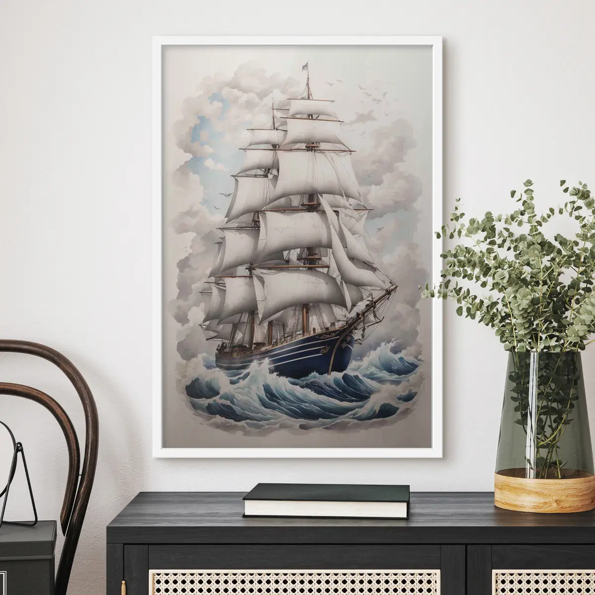 Poster Tall ship zeilt door ruwe zeeën f36047