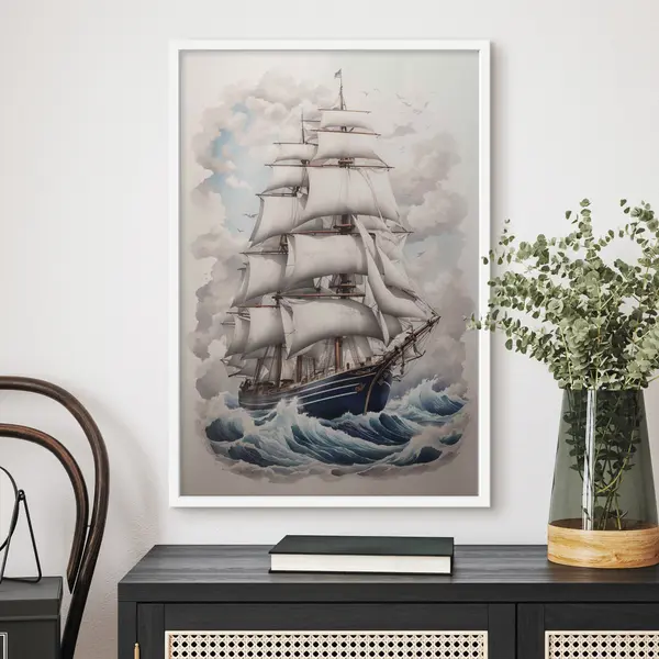 Poster Tall ship zeilt door ruwe zeeën Nr f36047