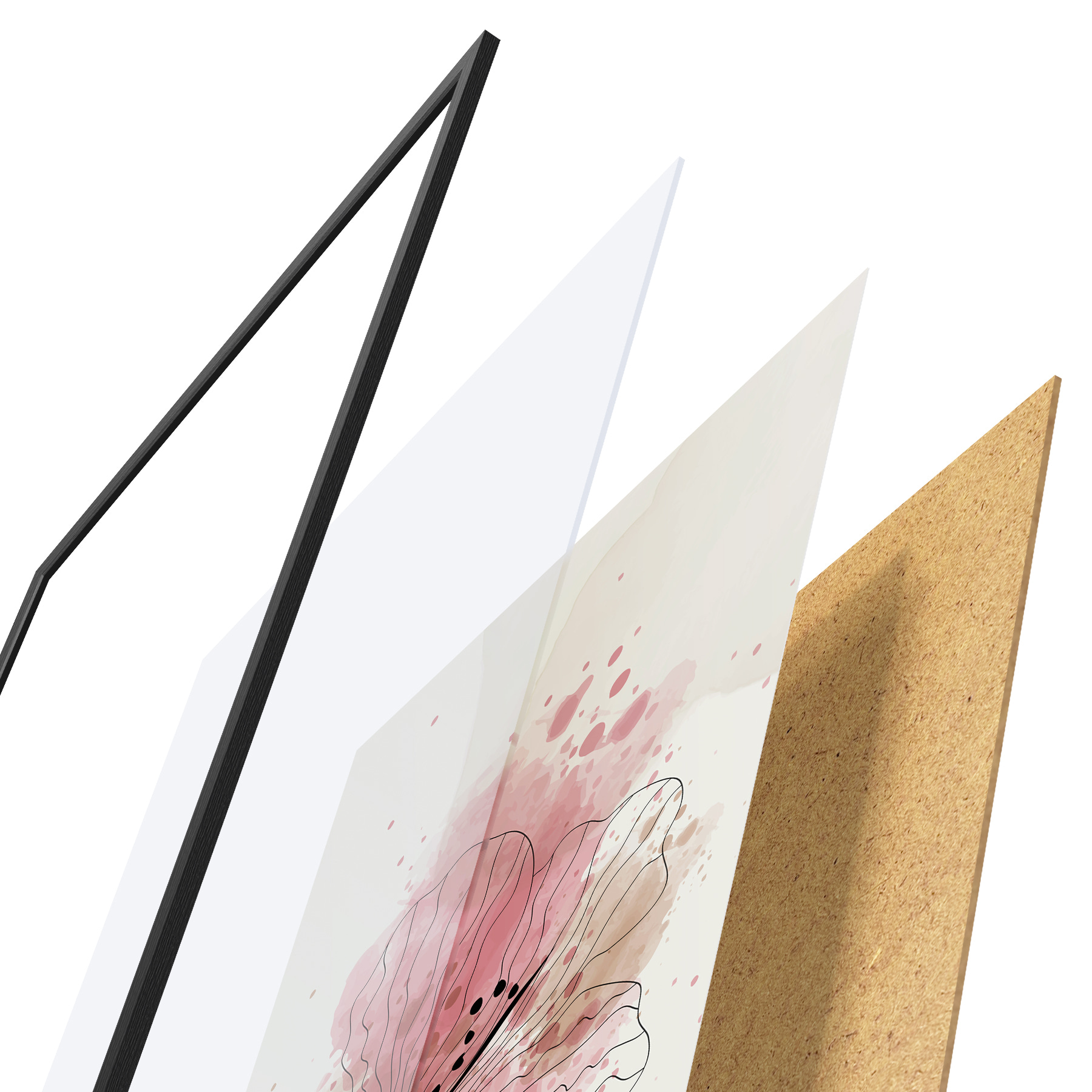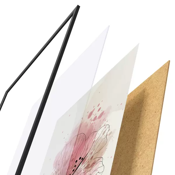 De poster bestaat uit een frame, plexiglas, geprinte afbeelding en spaanplaat achterkant. De poster kan meteen aan de muur worden gehangen dankzij de bevestigingen op de achterkant.