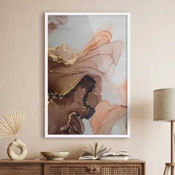 Poster Abstracte golven in zachte aardetinten Nr f36514