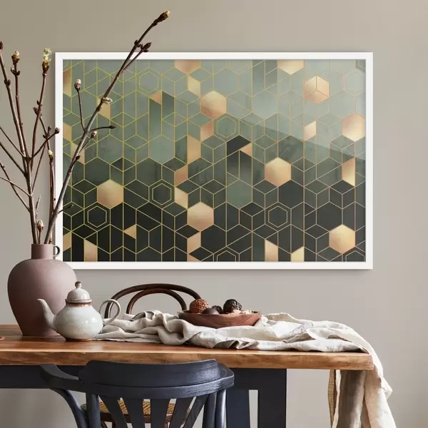 Poster Geometrische elegantie van smaragd en amber Nr f36602v2