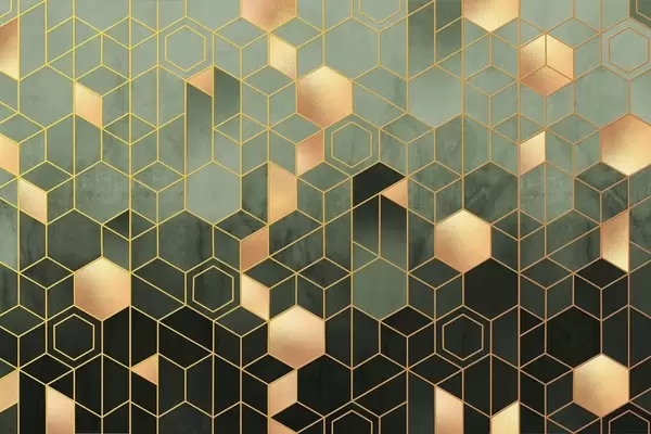 Poster Geometrische elegantie van smaragd en amber Nr f36602v2