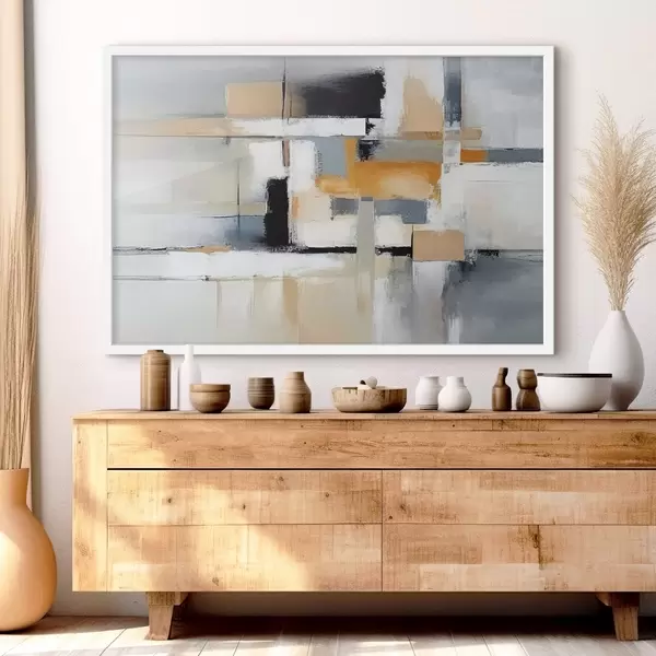 Poster Beige en grijs abstract met oranje en witte weefsels Nr f36624