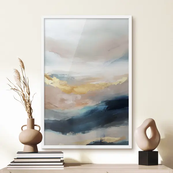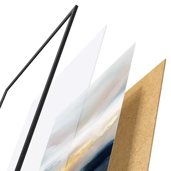 De poster bestaat uit een frame, plexiglas, geprinte afbeelding en spaanplaat achterkant. De poster kan meteen aan de muur worden gehangen dankzij de bevestigingen op de achterkant.