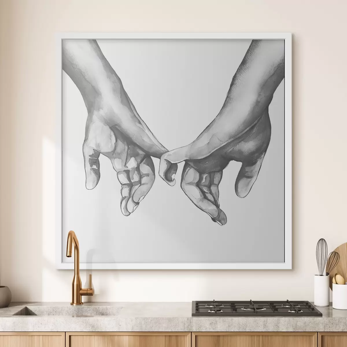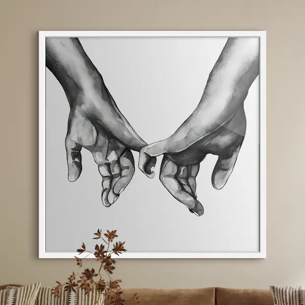 Poster Zwart en wit die handen op een witte achtergrond houden Nr f36848