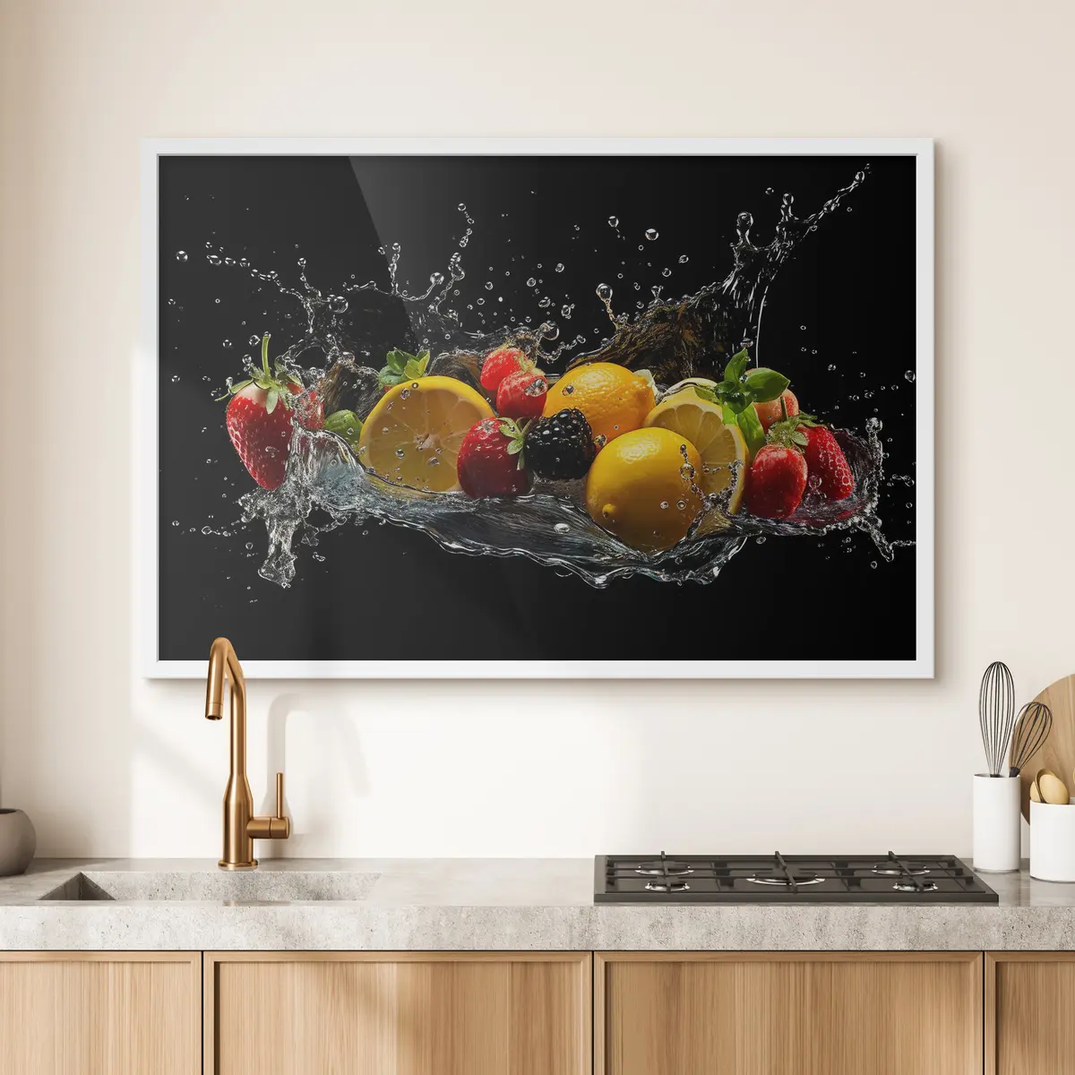 Poster Fruit dat in verfrissend water spettert Nr f37044