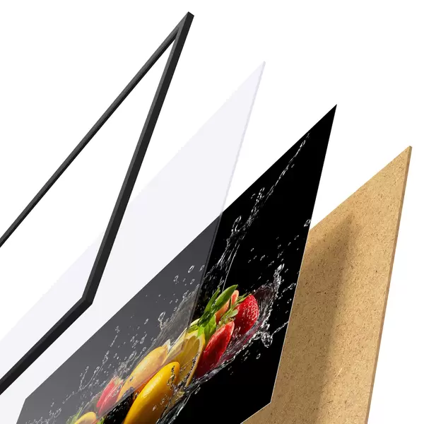 De poster bestaat uit een frame, plexiglas, geprinte afbeelding en spaanplaat achterkant. De poster kan meteen aan de muur worden gehangen dankzij de bevestigingen op de achterkant.