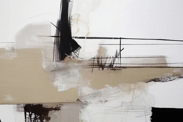 Poster Abstracte lijnen en aardetinten botsen Nr f37067