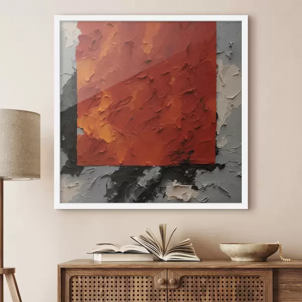 Poster Abstract olieverfschilderij met rood vierkant Nr f37167