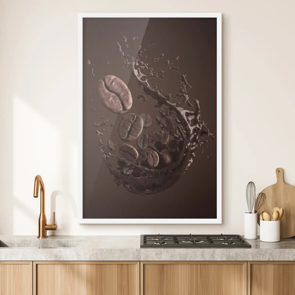 De poster bestaat uit een frame, plexiglas, geprinte afbeelding en spaanplaat achterkant. De poster kan meteen aan de muur worden gehangen dankzij de bevestigingen op de achterkant.