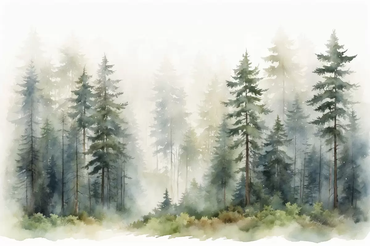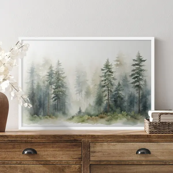 Poster Mistig boslandschap in zachte tinten Nr f37337