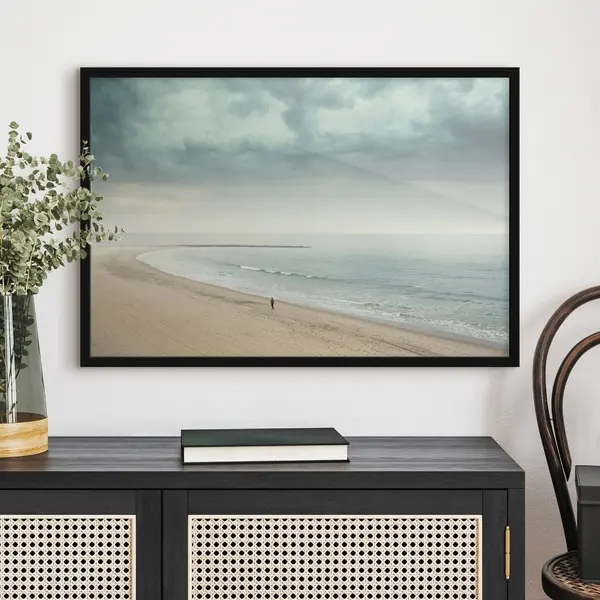 Poster Eenzame figuur die langs het strand loopt Nr f37470