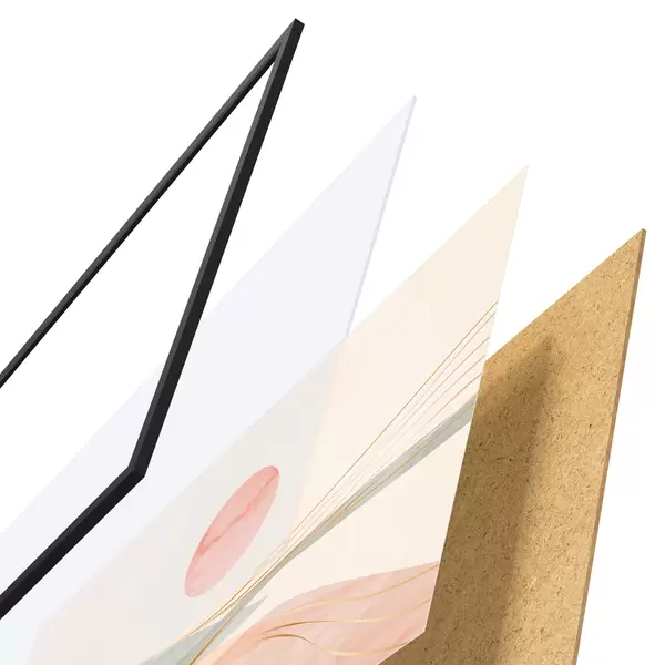 De poster bestaat uit een frame, plexiglas, geprinte afbeelding en spaanplaat achterkant. De poster kan meteen aan de muur worden gehangen dankzij de bevestigingen op de achterkant.