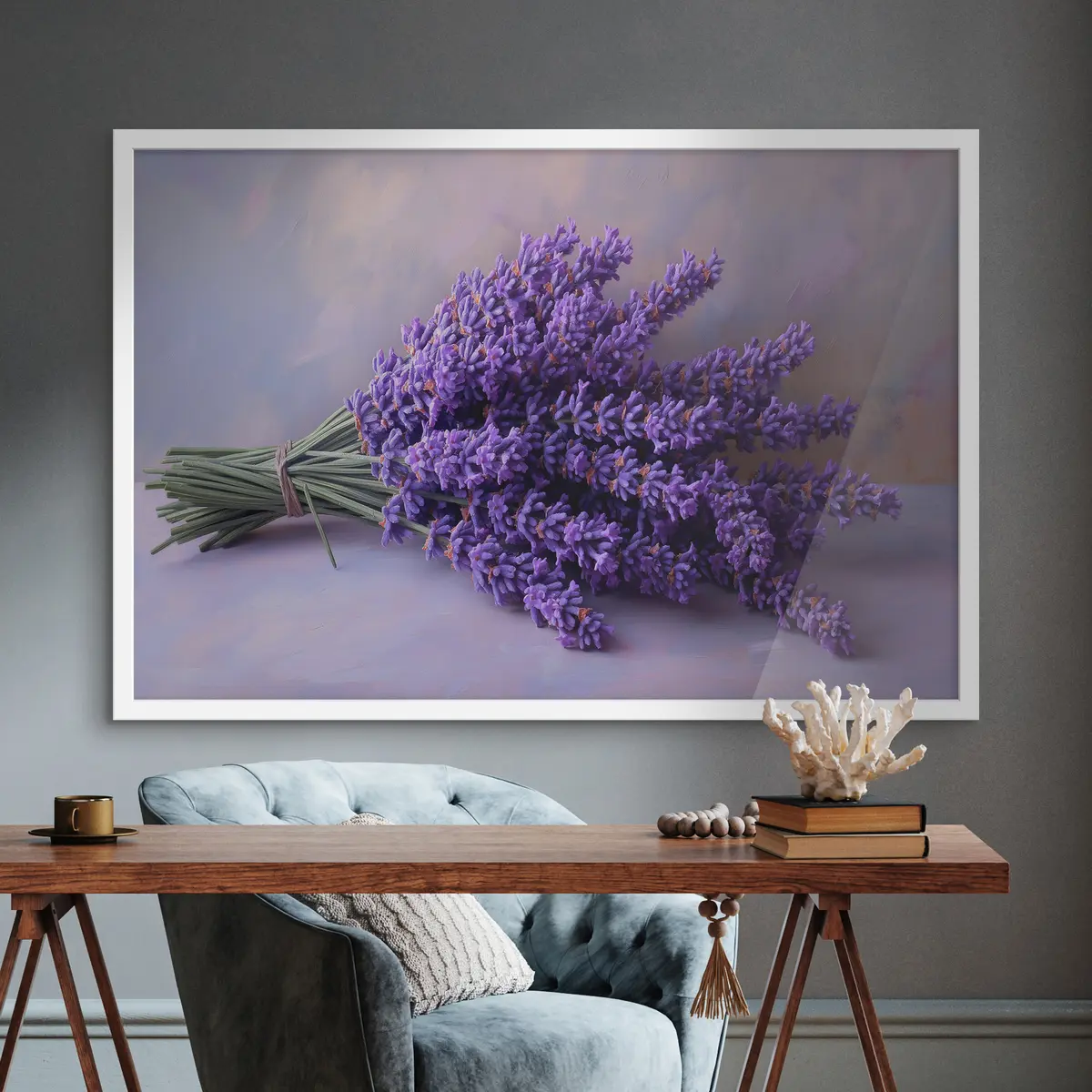 Je kunt het schilderij ophangen aan schroeven. Hiervoor leveren we bevestigingen bij onze foto's, zodat je de foto gemakkelijk kunt ophangen.