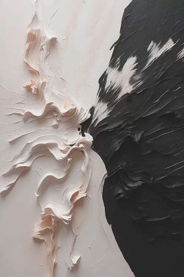 Poster Abstract olieverfschilderij in witte en zwarte kleuren Nr f38300