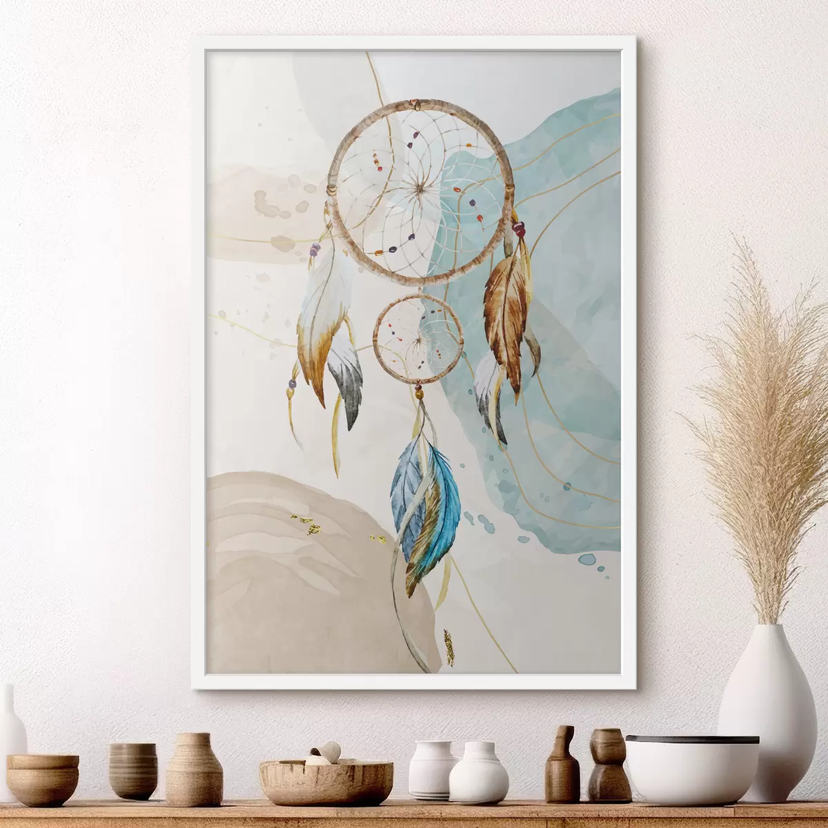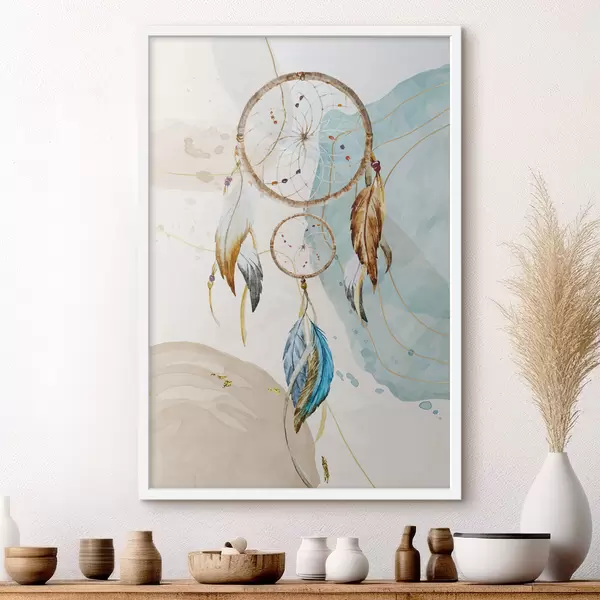 Poster aquarel, dromenvanger, veren, pastel Nr f38330