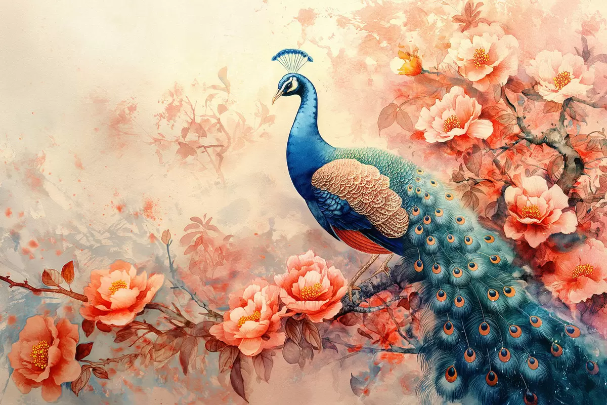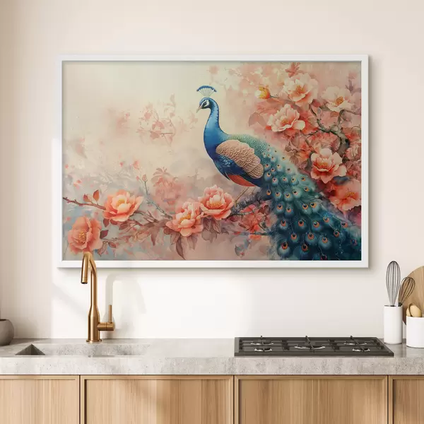 Poster Pauw in bloemen Nr f38454