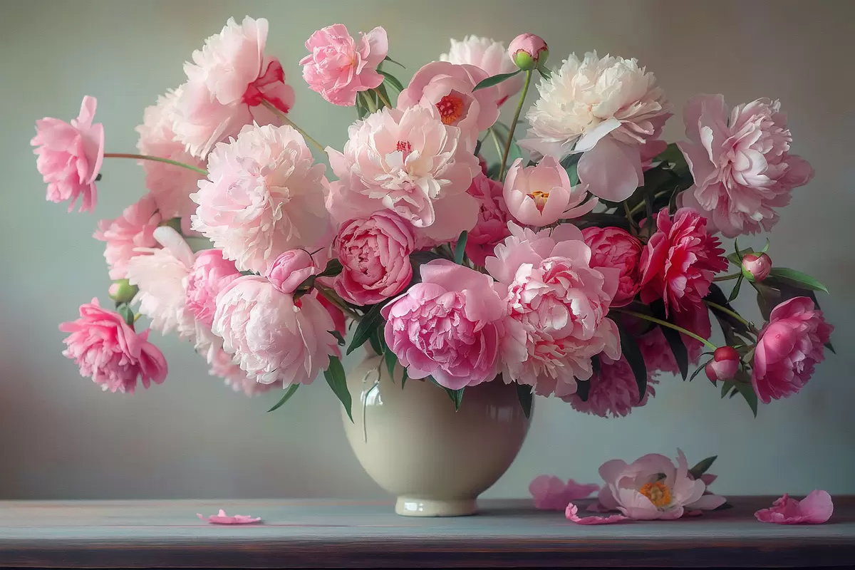 Poster Delicaat boeket pioenrozen f38458