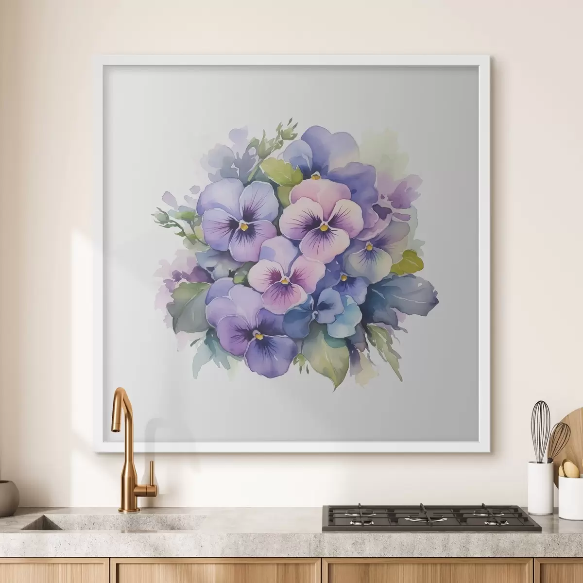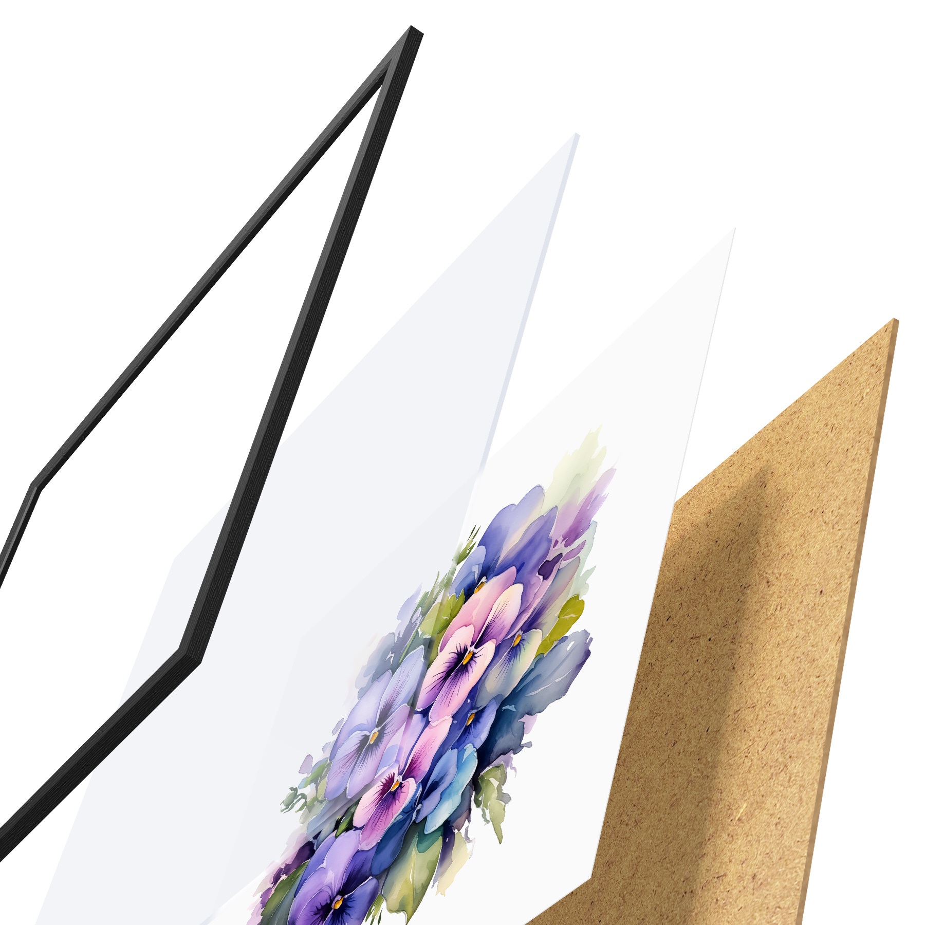 Poster Viooltjes aquarel illustratie, boeket, bloemen, blauwe, paarse, groene kleur Nr f38486