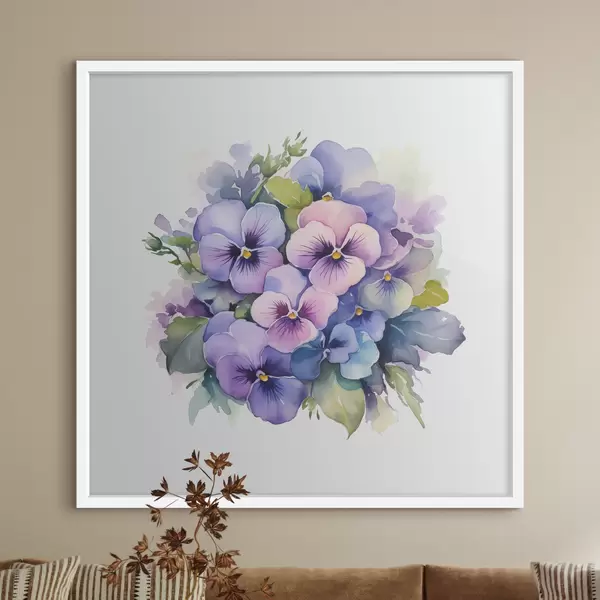 Poster Viooltjes aquarel illustratie, boeket, bloemen, blauwe, paarse, groene kleur Nr f38486