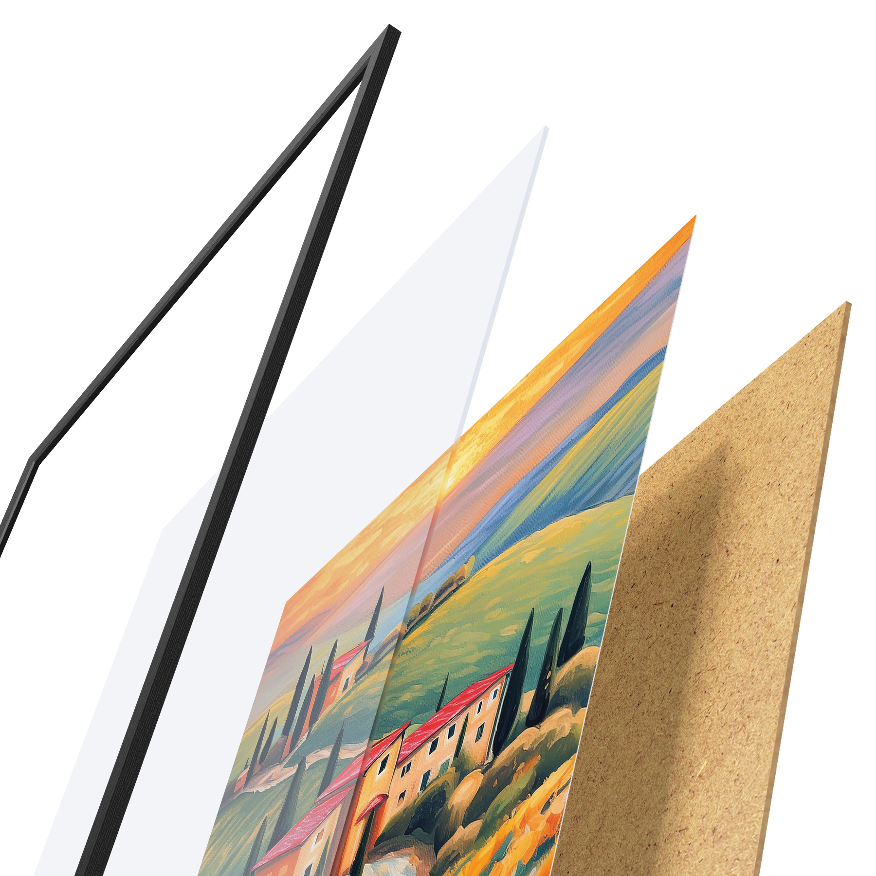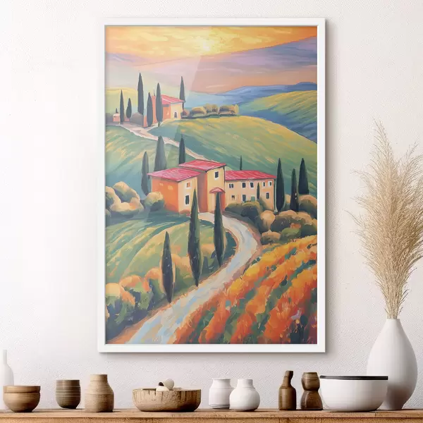 Poster Toscaanse landschappen, Italië, acrylkunst, oude huizen, velden, zomer f38488
