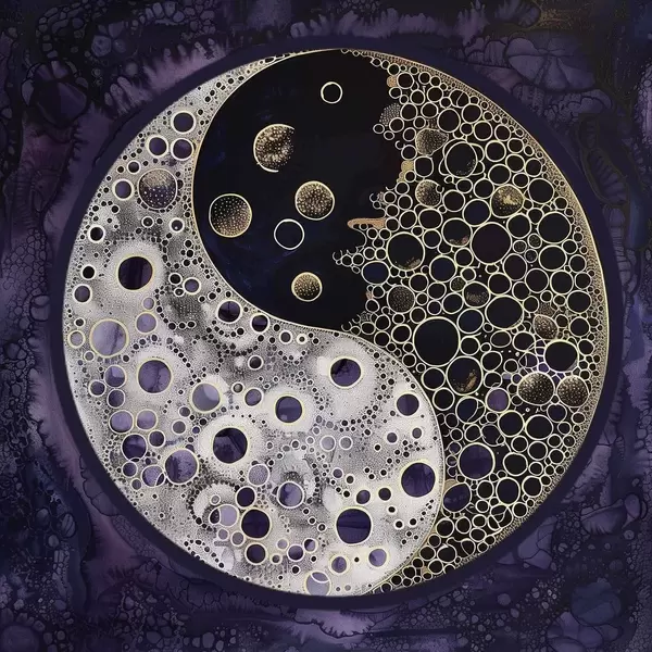 Poster Symbool van yin en yang op paarse achtergrond Nr f38535