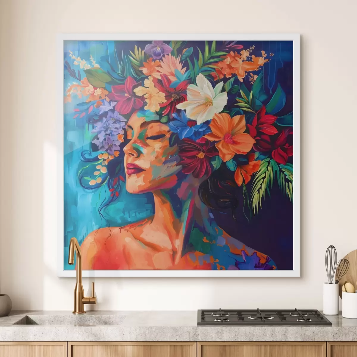 Poster Afbeelding van een vrouw met bloemen in haar haar f38574