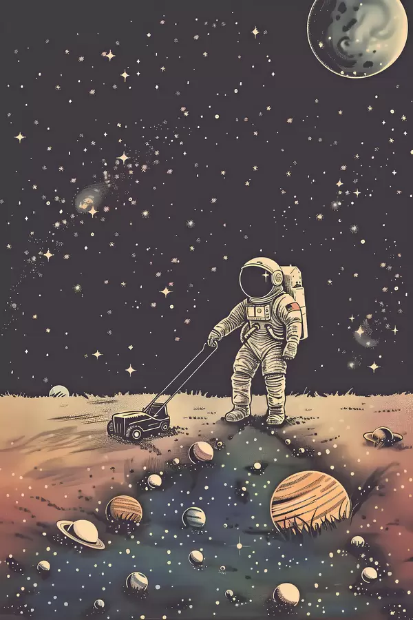 Poster Astronaut met grasmaaier in de ruimte Nr f38637