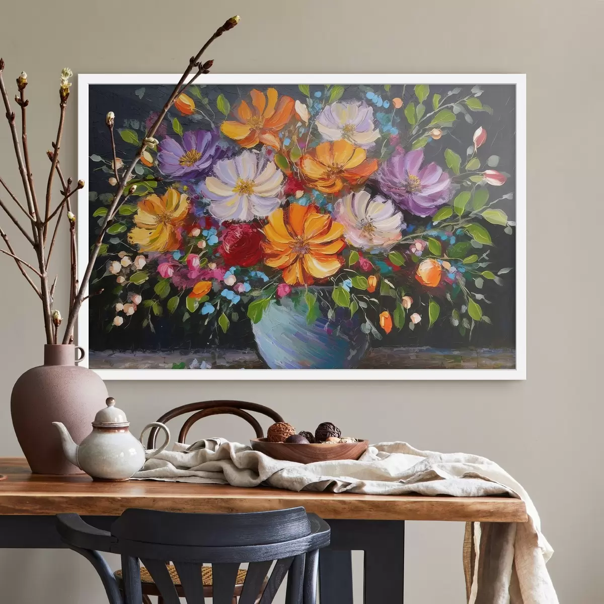 Poster Schilderij van bloemen in een blauwe vaas f38658