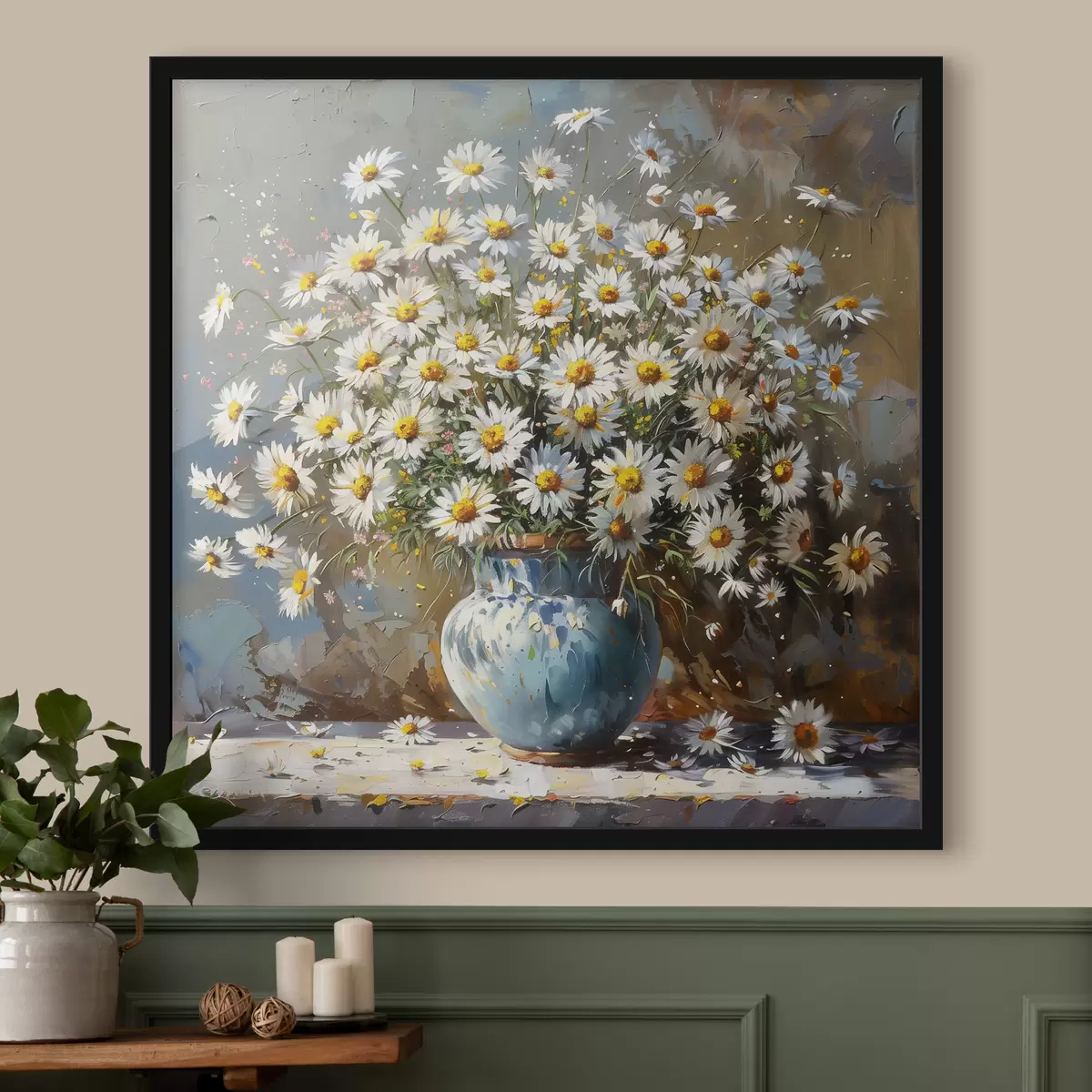 Poster Een vaas met madeliefjes op tafel Nr f38707