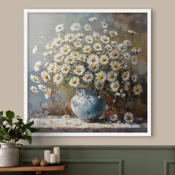 Poster Een vaas met madeliefjes op tafel Nr f38707