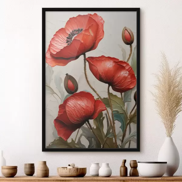 Poster Mooie rode klaprozen met olieverf Nr f38734