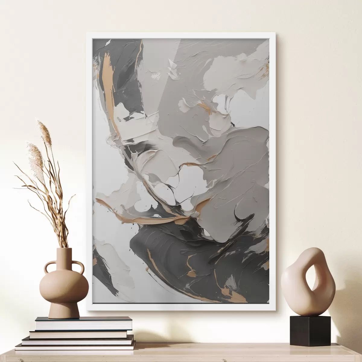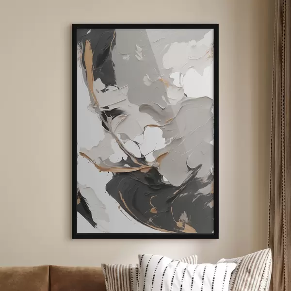 Poster Abstract schilderij in witte en grijze kleuren Nr f38855