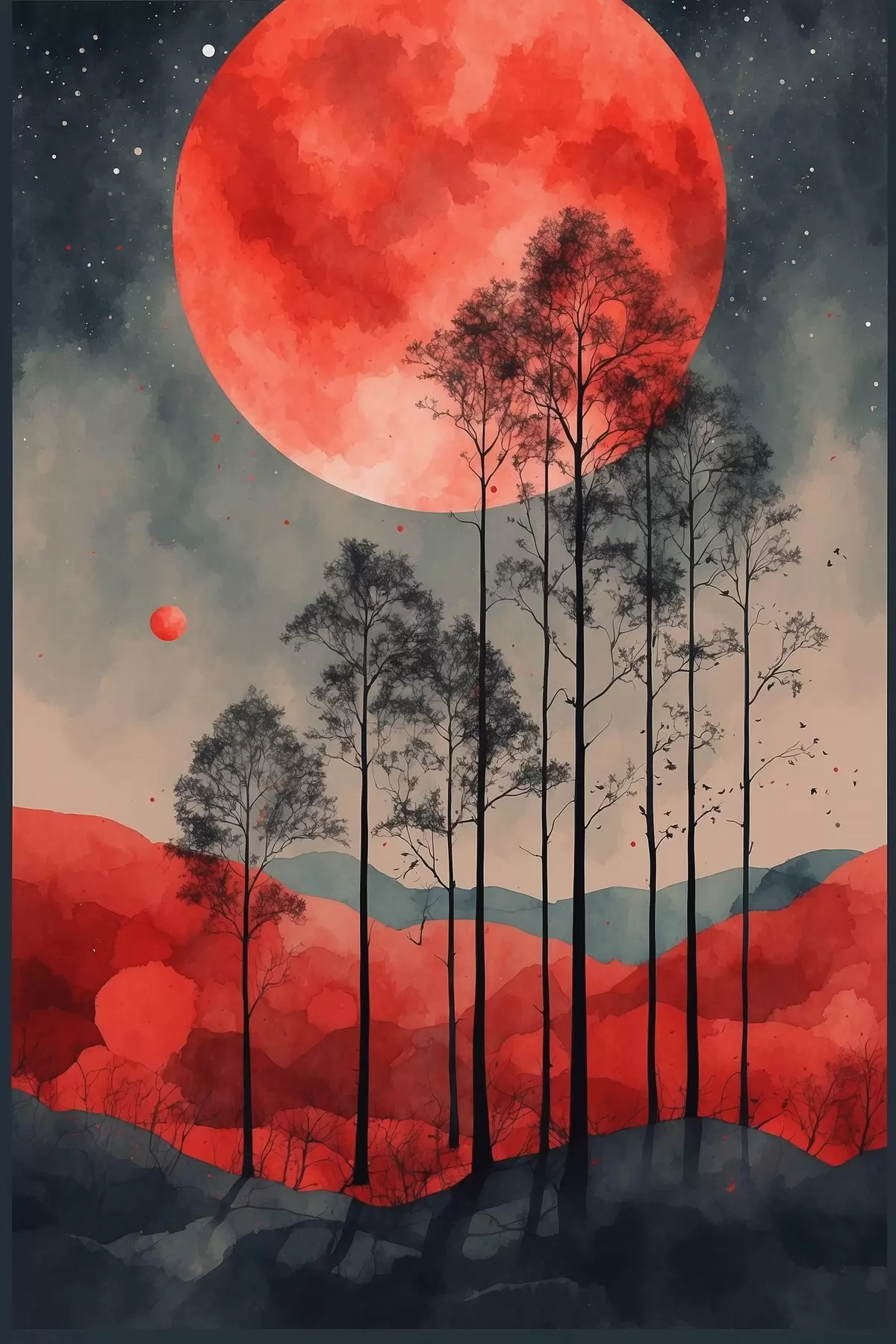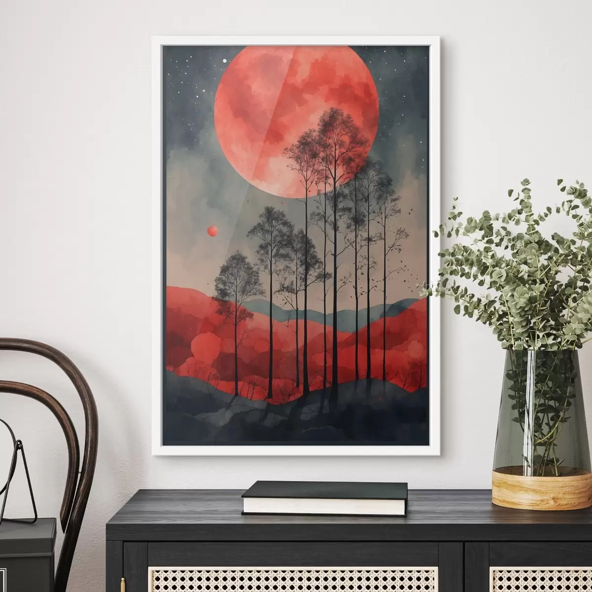 Poster Mysterieuze nacht onder een karmijnrode maan Nr f38862