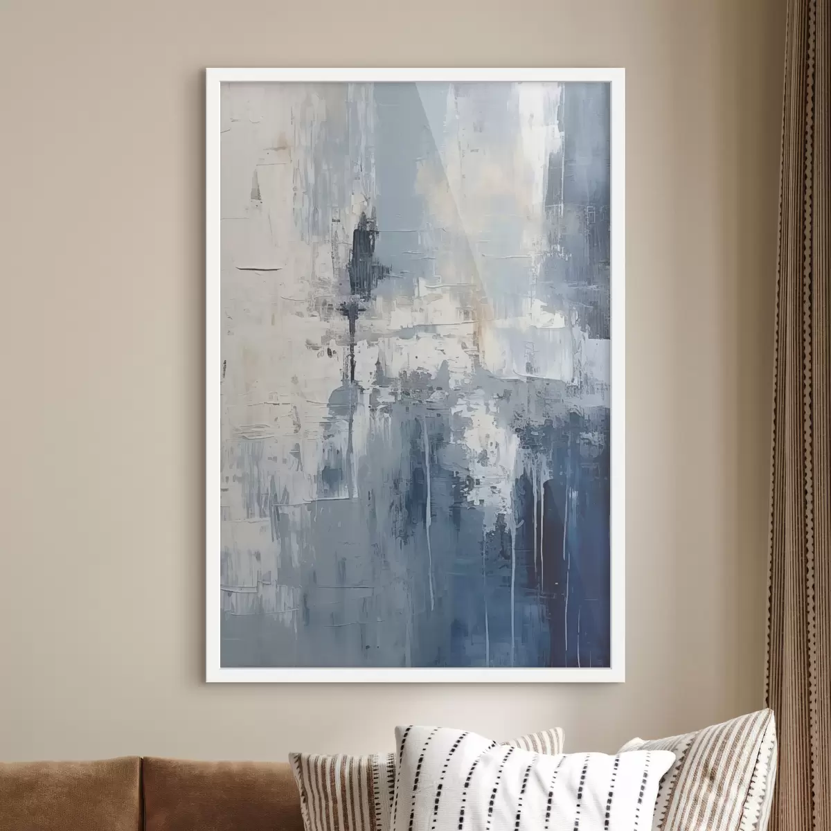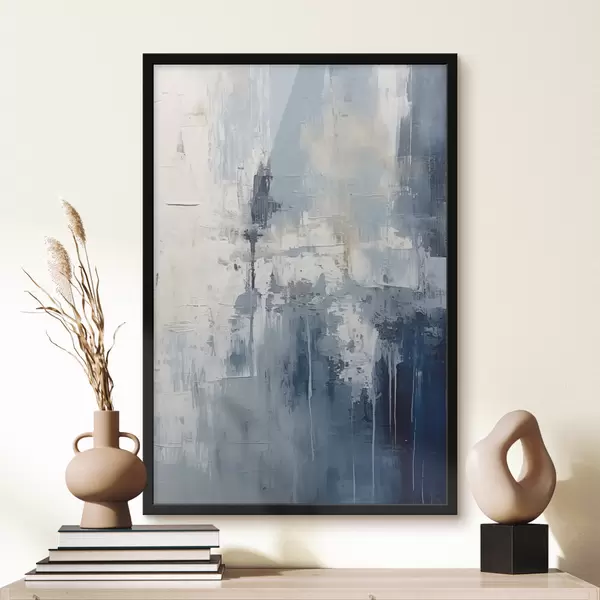 Poster Abstract minimalistisch olieverfschilderij, gewreven, geometrisch, vlek, blauwe en witte kleur Nr f38906