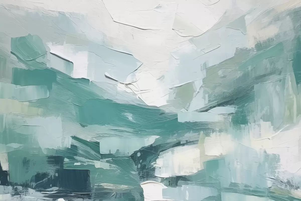 Poster Abstractie van blauwe en witte grote lijnen, imitatie van olieverfschilderij, minimalisme Nr f38915