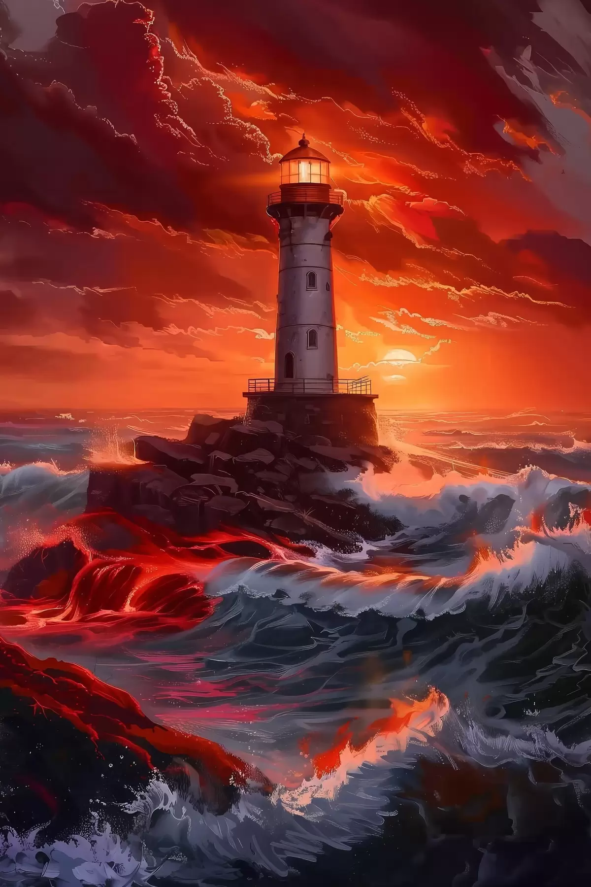 Poster Vuurtoren loodst door stormachtige zeeën Nr f39050