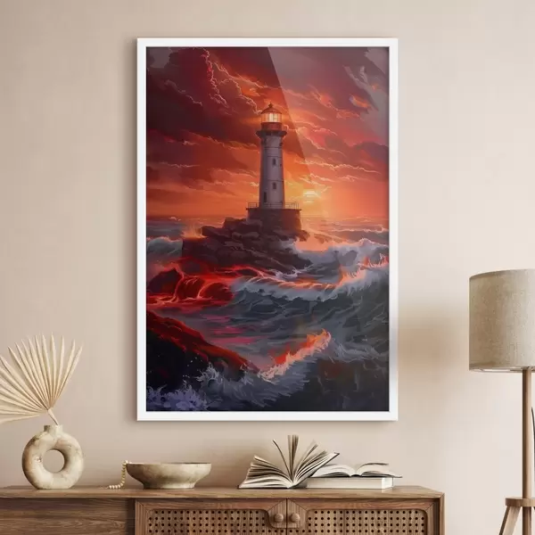 Poster Vuurtoren loodst door stormachtige zeeën f39050