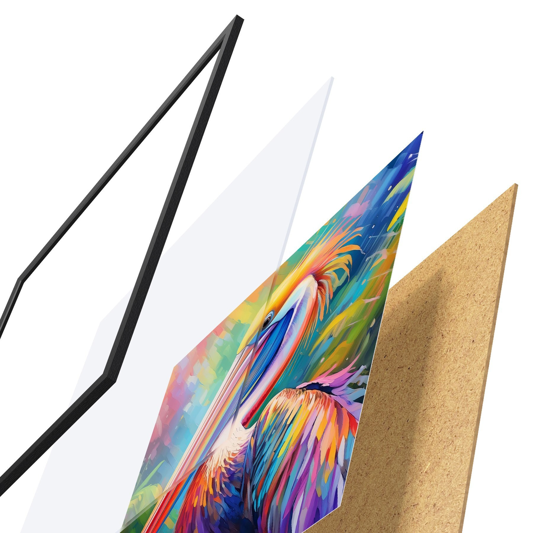 Poster Levendige pelikaan in kleurrijke omgeving Nr f39054