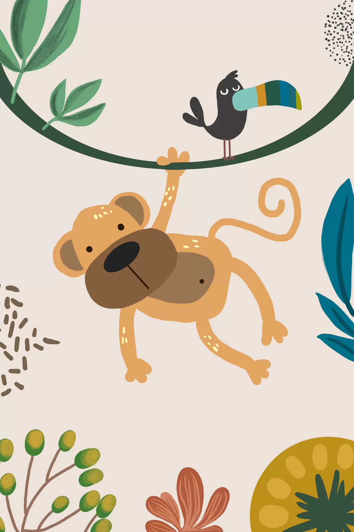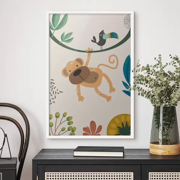 Poster Aap in de jungle in safaristijl, boho Nr f39094