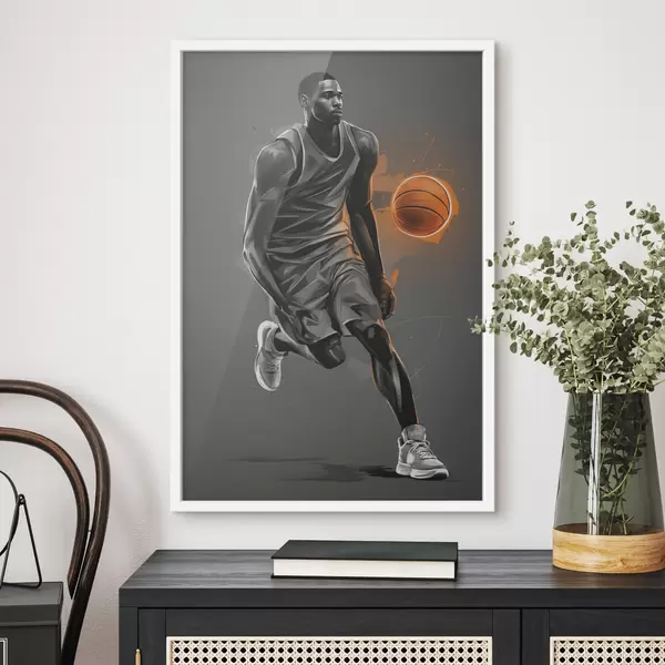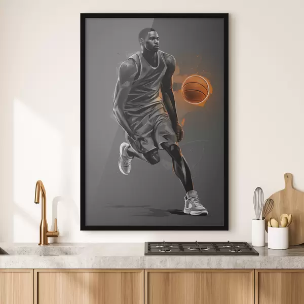 Poster Basketbalspeler op grijze achtergrond Nr f39157